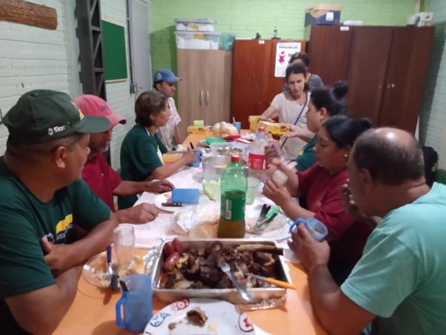 No dia 24 de dezembro, a Cooperativa de Trabalho Amigos do Meio Ambiente (COAMA), realizou almoço de confraternização entre os cooperados, selando o encerramento do ano de 2021. Após o almoço, a presidenta Eva entregou mimo a cada um dos cooperados em sinal de gratidão. O almoço foi organizado pela monitora do Projeto TransformAção, Ir. Dilse Santin, que assessora o grupo semanalmente. A atividade foi realizada no espaço de atendimento das Crianças e Adolescentes, sala ao lado da cooperativa, porém mesmo pavilhão que abriga a Coama e o Programa 3 – Crianças e Adolescentes do Projeto TransformAção. Além dos cooperados da Ir. Dilse, Iltomar Siviero, coordenador do Programa Cooperativismo, marcou presença no momento de confraternização. Foi um momento importante para concluir os trabalhos ano reforçando o espírito coletivo e de união entre todos os cooperados e Projeto TransformAção.