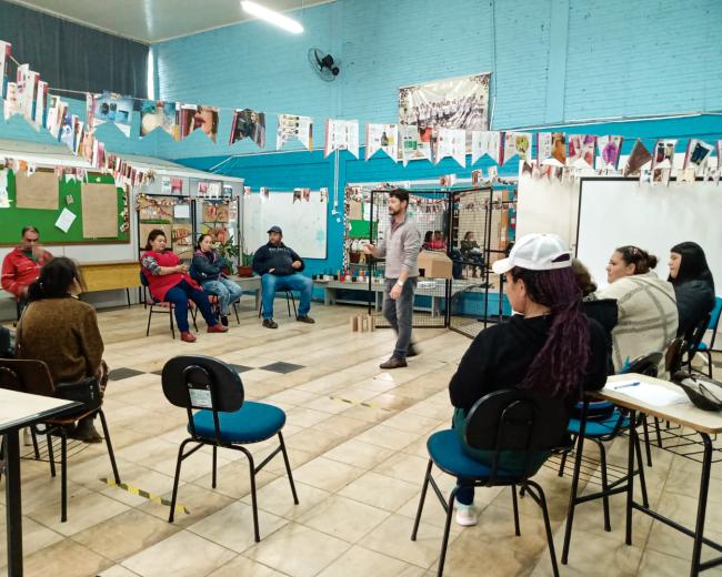 No dia 14 de julho de 2022, o Projeto deu início ao programa de formação para os cooperados das cooperativas de catadores por ele assistidas em Passo Fundo. Ao todo, serão sete encontros formativos. O primeiro aconteceu somente com membros/as das diretorias das três cooperativas: COAMA, RECIBELA e COOTRAEMPO. O programa dos encontros formativos terá como tema gerador Os pilares de sustentação das cooperativas de catadores de Passo Fundo: vamos ver e conhecer mais a nossa casa? O primeiro encontro foi realizado somente com as diretorias e consistiu em identificar quais são os pilares que sustentam as cooperativas de catadores de Passo Fundo. Por meio de atividade criativa e participativa, os/as membros/as das diretorias foram provocados a indicar e, posteriormente, refletir sobre os pilares por eles entendidos. Iltomar Siviero, coordenador do Programa Cooperativismo do Projeto TransformAção assessorou esse encontro e problematizou junto com os participantes quais são os pilares que servem de base ás cooperativas e que sem eles as coisas podem ficar frágeis e sem sustentação firme e segura. Cada pilar que foi sendo debatido, aos poucos, ia sendo fixado na casa/galpão e, assim, ficou visível a base sólida das cooperativas. Ao final do encontro, todos/as perceberam que o encontro foi muito importante para que todos/as os/as membros/as das diretorias compreendam cada vez mais o que é e como se estrutura e se movimenta uma cooperativa em todas as suas frentes de ação. Para Iltomar Siviero, assessor do encontro, o objetivo foi alcançado e agora terá seu desdobramento com mais seis encontros em cada cooperativa, diretamente com os cooperados em seus pavilhões. Essa atividade é parte do Projeto Coleta Seletiva Solidária, com apoio do Fundo Municipal do Meio Ambiente.
