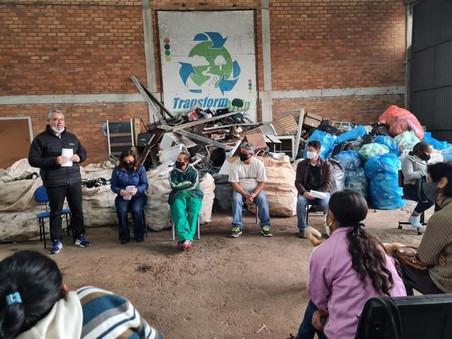 No dia 15 de julho, o Projeto TransformAção e as Cooperativas de Reciclagem de Passo Fundo, estiveram reunidos com a vereadora Eva Valéria Lorenzatto e o assessor do deputado federal Paulo Pimenta, neste ato representado por Nei Camara, para selar o recebimento da Emenda Parlamentar. A Emenda Parlamentar foi solicitada pela vereadora em vista do fortalecimento e apoio aos catadores e recicladores, destinado para Passo Fundo. A Emenda foi encaminhada ao município que já se cadastrou junto ao Ministério da Economia para o recebimento do valor de R$ 200.000,00 (duzentos mil reais). Da parte do deputado, o assessor destacou que o envio da emenda é para ajudar a fazer mudanças reais na vida de pessoas que necessitam de auxílios para qualificar as condições de trabalho. Para a vereadora, essa emenda concretiza uma promessa de campanha eleitoral, feita por ocasião das visitas aos galpões de reciclagem, nos quais encontrou uma realidade com grandes necessidades de melhorias. Para o TransformAção, a emenda vem de fato colaborar para a continuidade da transformação real na vida das pessoas. Para as presidentes das cooperativas e associação (RECIBELA, COOTRAEMPO, COAMA e AREVI), é motivo de agradecimento à vereadora e ao Projeto TransformAção que estão intermediando esse recurso em benefício das cooperados. O evento foi realizado na sede da Coama e contou com a presença de representantes de todas as cooperativas de reciclagem e associação. Foi um encontro de alegria e segue com a expectativa do empenho ser realizado ainda neste ano.