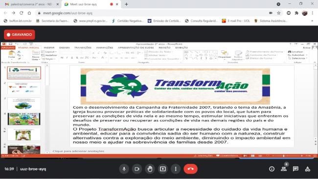 Com essa atividade, o Projeto TransformAção estende suas ações para junto da comunidade e se empenha na formação para cuidar da vida, cuidar da natureza e cuidar das pessoas.