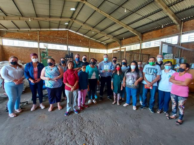No dia 30 de outubro as cooperativas Coama, Cootraempo, Recibela e associação Arevi, juntamente como Projeto TransformAção, acolheram o deputado federal Paulo Pimenta em atividade em Passo Fundo. Paulo Pimenta foi autor de emenda parlamentar destinada às cooperativas de reciclagem e o Projeto TransformAção. Sua visita acompanhada pela vereadora Eva Valéria Lorenzato e assessoria. Em sua fala o deputado deixou manifesto seu apoio aos grupos de reciclagem, bem como as suas lutas e causas em vista de garantir mais dignidade a esses trabalhadores que vivem da coleta, triagem e comercialização de materiais recicláveis. “Vocês, trabalhadores da reciclagem, fazem um grande bem ao Brasil e ao mundo porque vossa contribuição é para garantir o futuro do planeta e das gerações do presente e futuro. Portanto, vocês são um grande bem às políticas públicas”, destacou o deputado. A atividade aconteceu no pavilhão da Coama e contou com a presença das presidentas das cooperativas e de membra da direção do Projeto Transformação, além dos cooperados, coordenação do programa cooperativismo no TransformAção e outras lideranças.